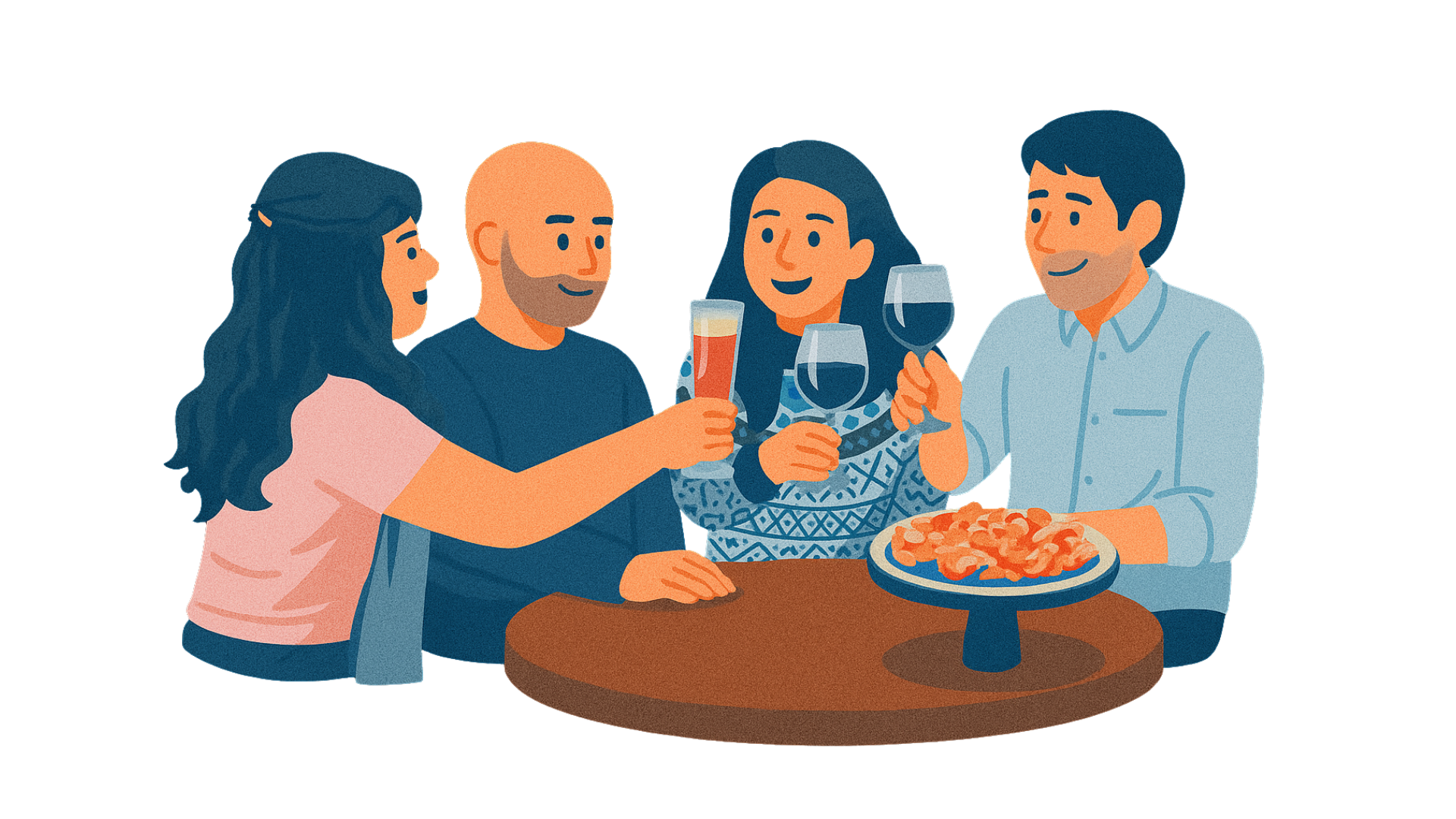 De muziek gaat wat harder, de glazen klinken, en de sfeer wordt steeds losser.
