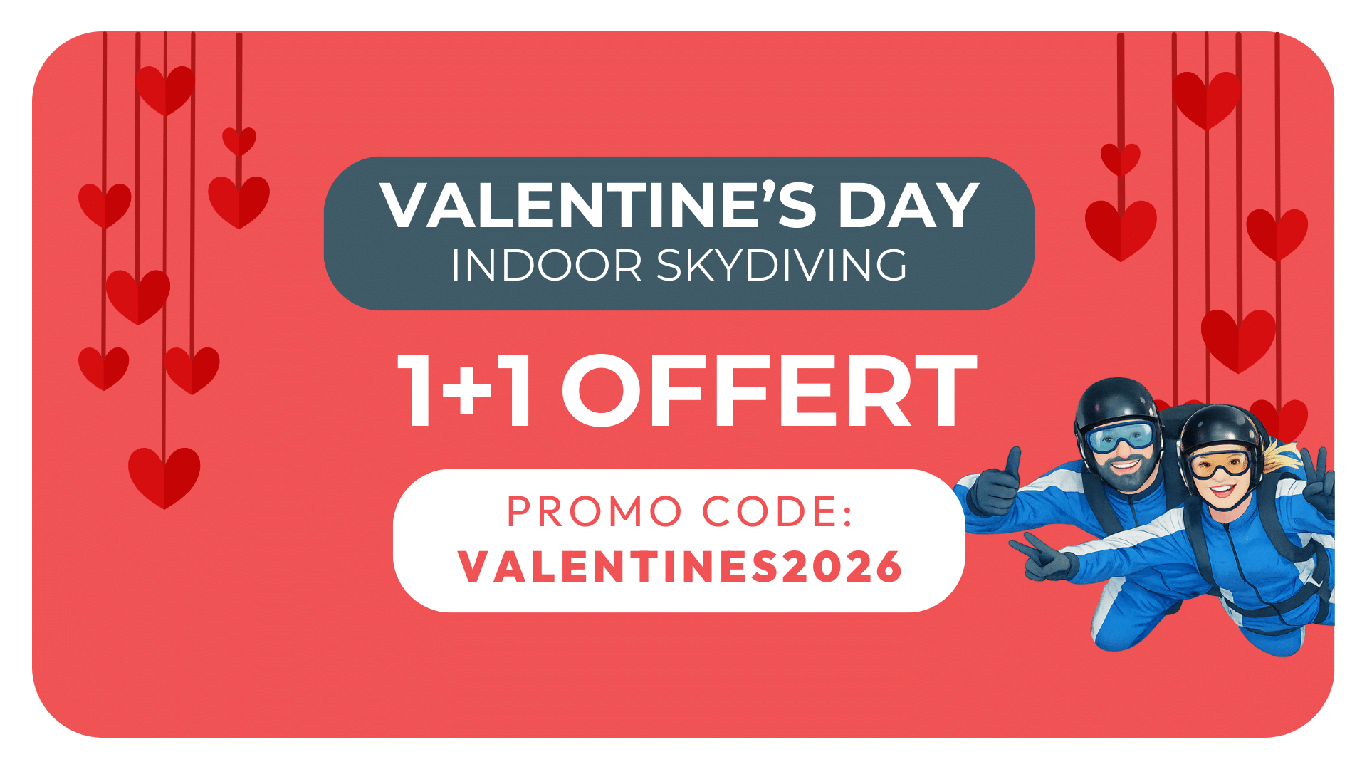 Achetez un pack d’Indoor Skydiving et le deuxième est offert grâce à notre offre spéciale Saint-Valentin.