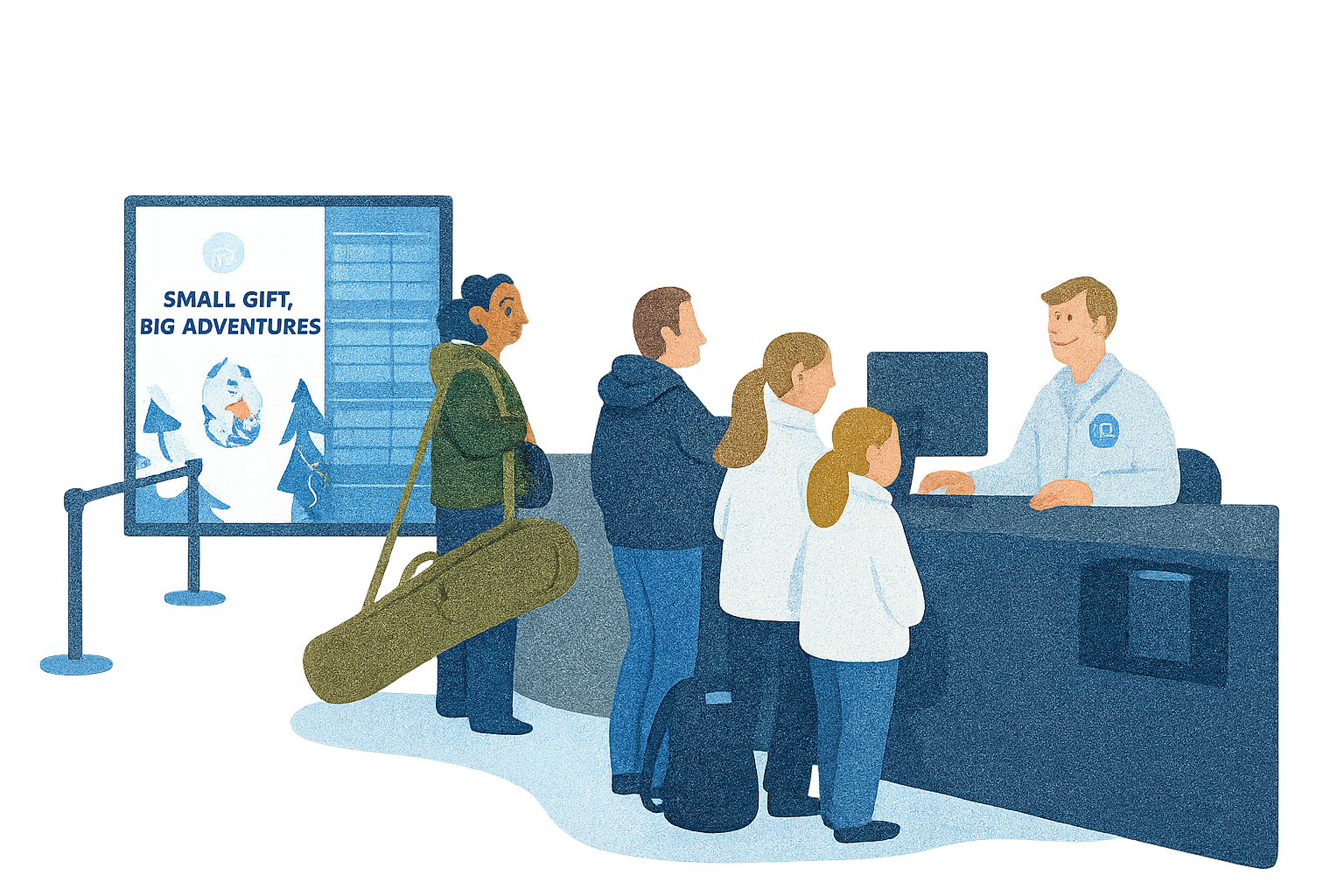 Geen ski-ervaring nodig — gewoon zitten, lachen en glijden.
